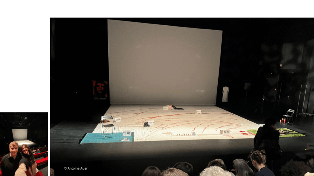 Les différents aspects de la pièce se mariaient bien ensemble et la diffusion des interviews et photos permettaient de donner une impression de proximité avec le récit. Les différents jeux de lumières soulignaient le propos et permettaient au spectateur de mieux ressentir l’histoire. La proximité a aussi été favorisée quand les comédiennes ont commencé à jouer autour de nous et à sortir du plateau pour se rapprocher.